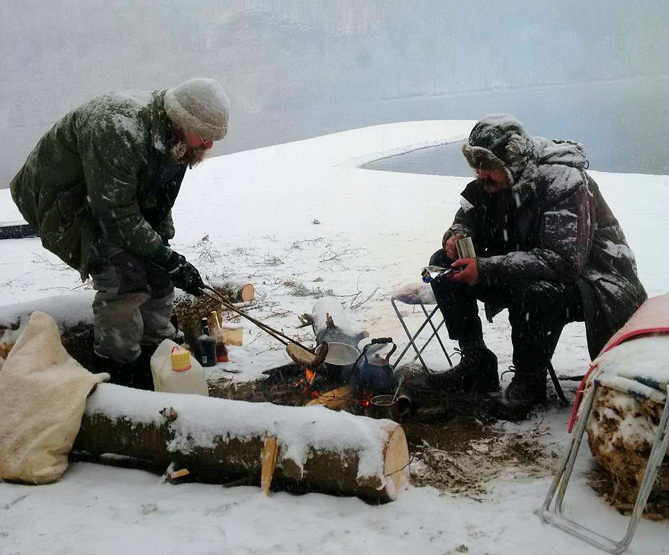 Ráno jsme zjistili, že se oteplilo a napadlo spousta nového sněhu. Kamarády, kteří se spokojili s ulehnutím pod širák, jsme museli trochu hledat. Prostě zima, jak má být. Tak jsme postupně posnídali něco dietního, třeba vejce na špeku a chystali se do díla.