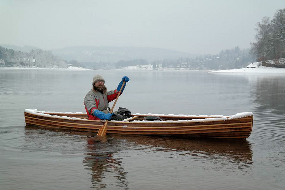 Odpoledne pak najednou odkudsi přišel, nebo spadl a byl tady. Nápad… Nasněžilo, máme svah zakončený nezamrzlou vodní plochou, máme krom nóbl lodiček i jednu obyčejnou plastovku, pojďme s tím něco udělat… Pravda, že nikdo z nás neměl se snowcanoeingem pořádné zkušenosti, ale zato nadšení nechybělo. Vytyčili jsem trať a vyrazil první jezdec. Ale ono to nejelo. Tedy napoprvé. Nicméně s každým dalším pokusem byla trať rychlejší a gejzíry při dojezdu do vody mohutnější. Nejvíc bodů nakonec nasbíral kamarád Luboš, protože piruetku ve vzduchu i s lodí, to jen tak někdo nezvládá.
