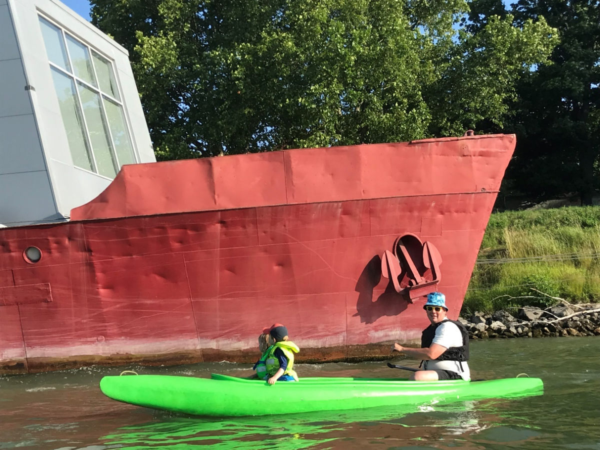 Míjení s velkými loděmi je vždycky zážitek, protože vlny jsou spolehlivě vyšší než naše kánoe. Ale při správném najetí nás to nezalévá. Zatím. Setkání s hydrofoilem (rychlou křídlatou lodí) – to je ale jiná liga! Zejména, když přilítne zezadu.