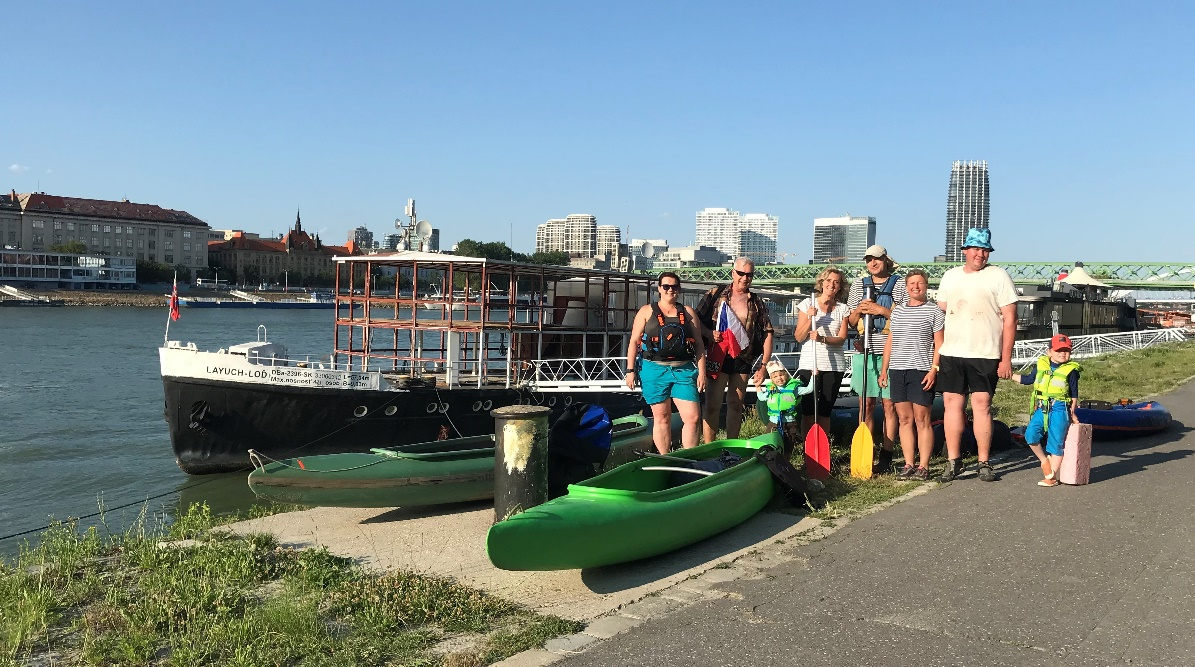 Dnes vnuci a pravnuci starých Dunajčíků nemají prázdniny potřebné na splutí celého úseku Dunaje z Bratislavy do Černého moře, neb jsou to tatíci či dědové, kteří opustili školní lavice už dávno. Takže původní nápad byl rozšířen na splutí celého Dunaje od pramene až do delty - ovšem po částech. Snad by měl Jules Verne a jeho Lodivod Dunajský radost. První část jako testování, co všechno vydrží pra-pra-vnuci předků-Dunajčíků, byla podniknuta cesta v úseku Pasov - Komárno v roce 2023. Lze si o tom přečíst v článcích Dunaj pro začátečníky (Martin Kašík, 10/2023, padler.cz) a Dunaj pro pokročilé (Viola Kašíková, 11/2023, padler.cz). V následujícím roce trasa směřovala do oblasti průlomu německé části Dunaje nad Řeznem (Regensburg), dále na „pramen“ a horní tok Dunaje v okolí Beuronu. Pro jubilejní 100leté výročí byl vybrán úsek Dunaje u Bratislavy. Účastníky jsou početné rodiny Kašíků, pokud jim jen dovolovalo zdraví a svolení matek, a kamarádi Eckhardtovi. Vyrážíme 21.6. 2025 v poledne z rakouského Hainburg an der Donau asi 5 km nad soutokem Moravy s Dunajem. Jedna laminátka (Katka a Ivan), jeden plasťák (Martin, Matěj a Lada), jedna nafukovací baraka (Lenka a Pavel) a jeden packraft (Víla). Je vedro k zalknutí (asi jako před 100 lety), ale neodpustím si v úvodu krátké čtení z historické knížky, abychom uctili památku našich předků. Mám k nim posvátnou úctu za to, co všechno (pro nás) vykonali.