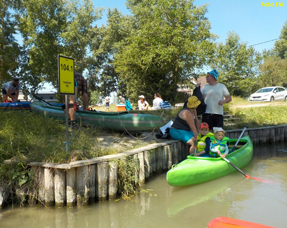 Malý Dunaj teče také rychle, ale aspoň tam nejezdí velké lodě přinášející vysoké vlny. Začínáme v Tomášově, kde je krásné přírodní tábořiště.