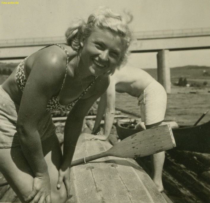 Děda s babičkou ale v roce 1945 párkrát na vodě byli. Jednu z výprav uskutečnili na horní Vltavu okolo Frymburka, kde se teď rozprostírá jezero přehradní nádrže Lipno I.
