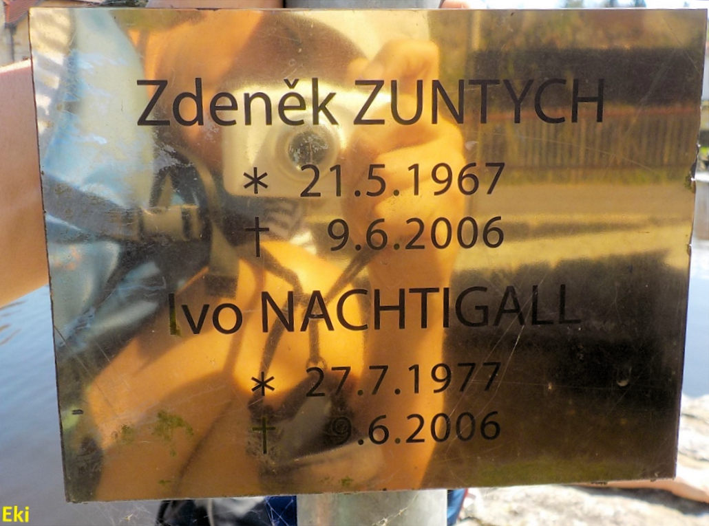 Tabulka se jmény utonulých vodáků na jezu Rožmberk