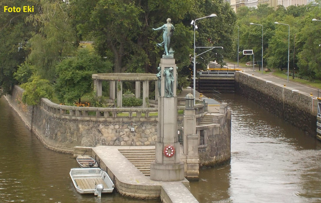 Největší monument u nás, který se používá jako symbolické vzpomínkové místo za utonulé, si můžete prohlédnout v Praze. Pod dolní špicí Dětského ostrova se na zdi uprostřed řeky vypíná žulový sloup. Na jeho vrcholu stojí 2,8 metru vysoká bronzová socha ženy, symbolizující Vltavu, nejsplouvanější vodáckou řeku. Boky pomníku zdobí čtyři půvabné ženské postavy, představující další zásadní vodácké řeky Čech – Berounku, Sázavu, Lužnici a Otavu.