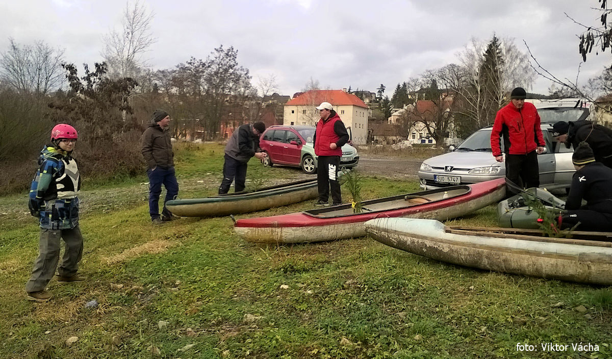 „Tak co letos, pojedeme?“ ptá se během listopadu Roman, který si vloni na Litavce odbyl svůj vodácký křest. Jasný, 23. prosince je den D. Jenže ráno volá manželka jednoho účastníka, že on s námi rozhodně nepojede, že musí být doma, pomáhat a hlídat atd. Pod heslem: “Já jsem doma šéf,“ to dopadlo, jak muselo. Jelo nás sedm statečných. I to je hezký počet, když uvážím, že vloni jsme jeli dva. Chápu, že manželky nejsou úplně nadšené, když v předvánočním dni vyrazí muži pryč, ale dvě hodinky, myslím, není dlouhá doba.