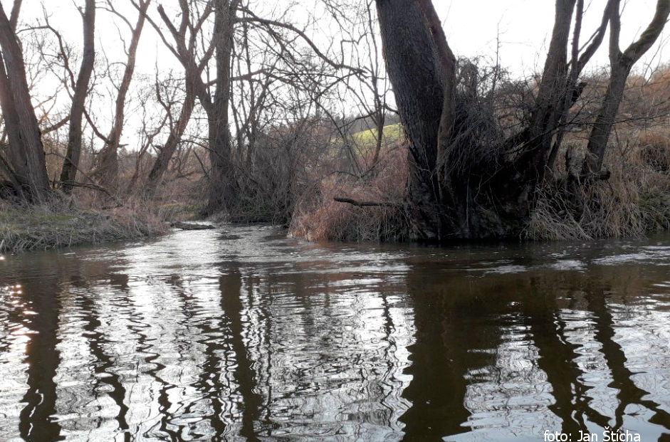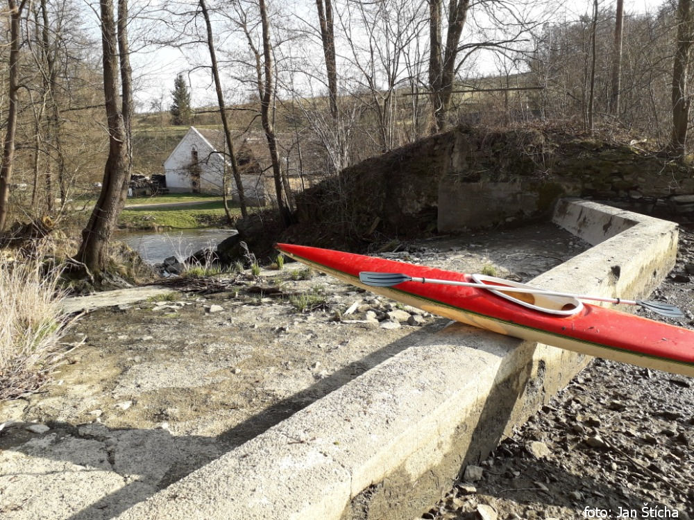 Místy jsem si zastavil, vystoupil a ze břehu odstraňoval klacky a spadlé stromky, jen ať se co nejvíc jede. Vzhledem ke zvýšenému průtoku byla voda parádně rozlitá ze svého koryta a prakticky jsem nedrhl. Stejně se mi ale nevyhnulo přenášení, protože ať se snažíte jakkoliv, některá místa zkrátka projet nelze. Vrbičková obtížnost je tu cca VR 2-3 s místy neprůjezdnými místy, které zatarasily popadané vrby.