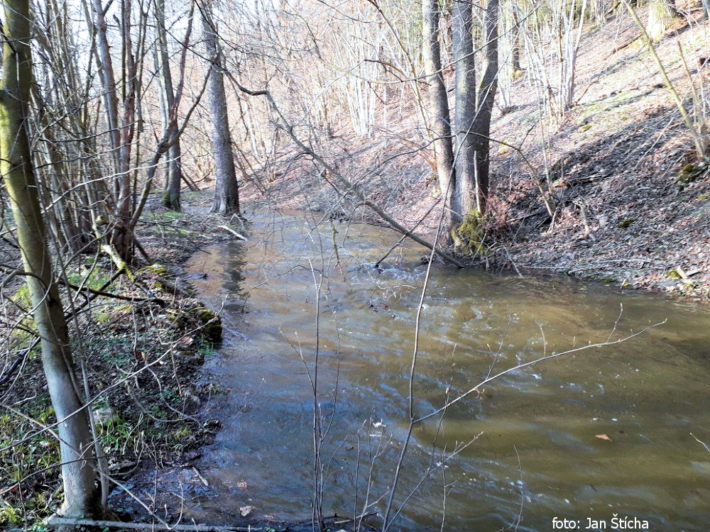 Od rybníka teče voda svižně a zprvu bez větších překážek