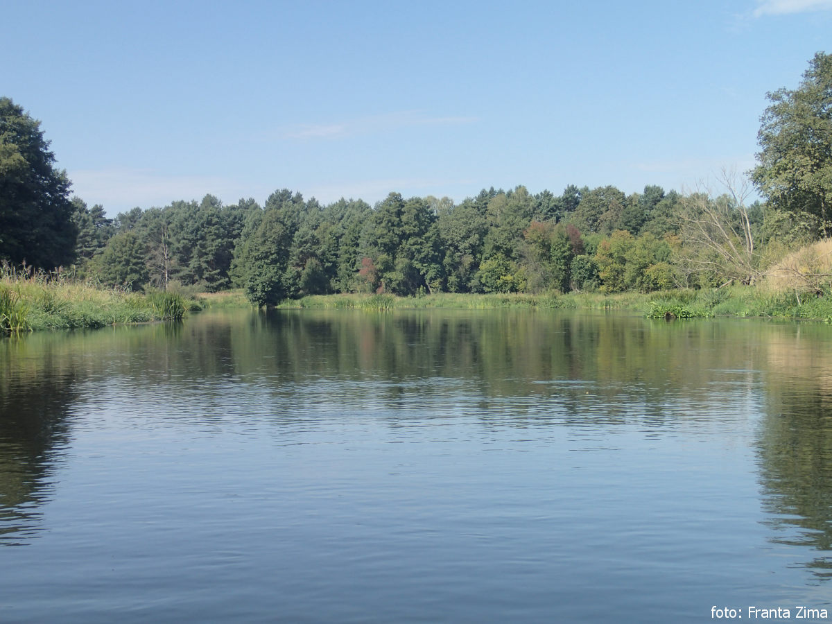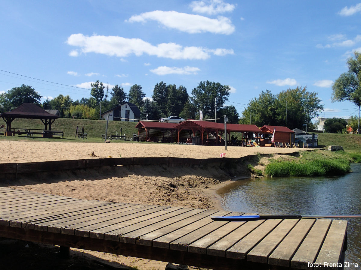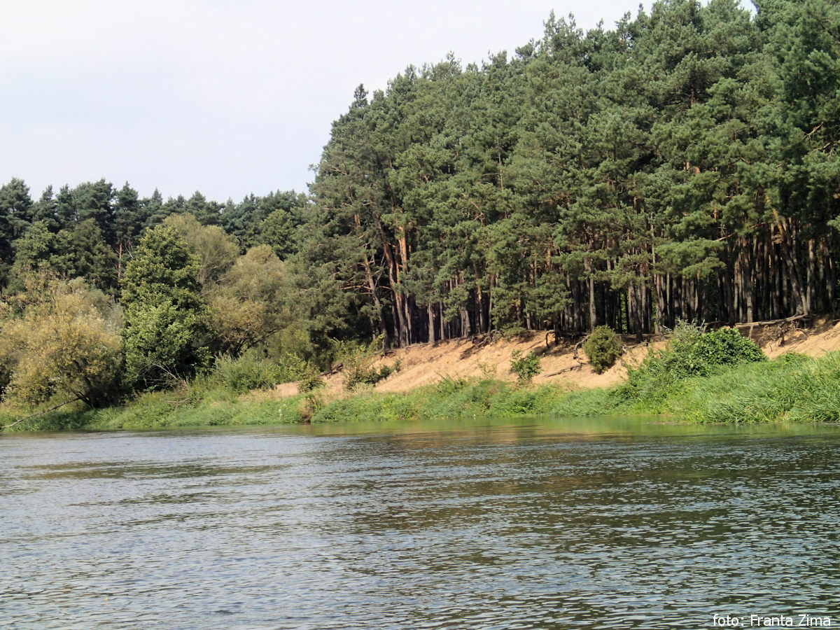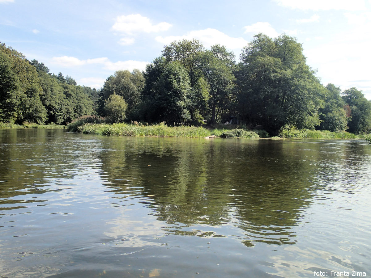 Zatavili jsme se ještě na nákup v Rychlocicích na pravém břehu. V Burzeninu by se asi dalo tábořit na pláži, ale nám se tam nelíbilo a pluli jsme dál. Po 1 km se utábořili na kraji les na levém břehu.