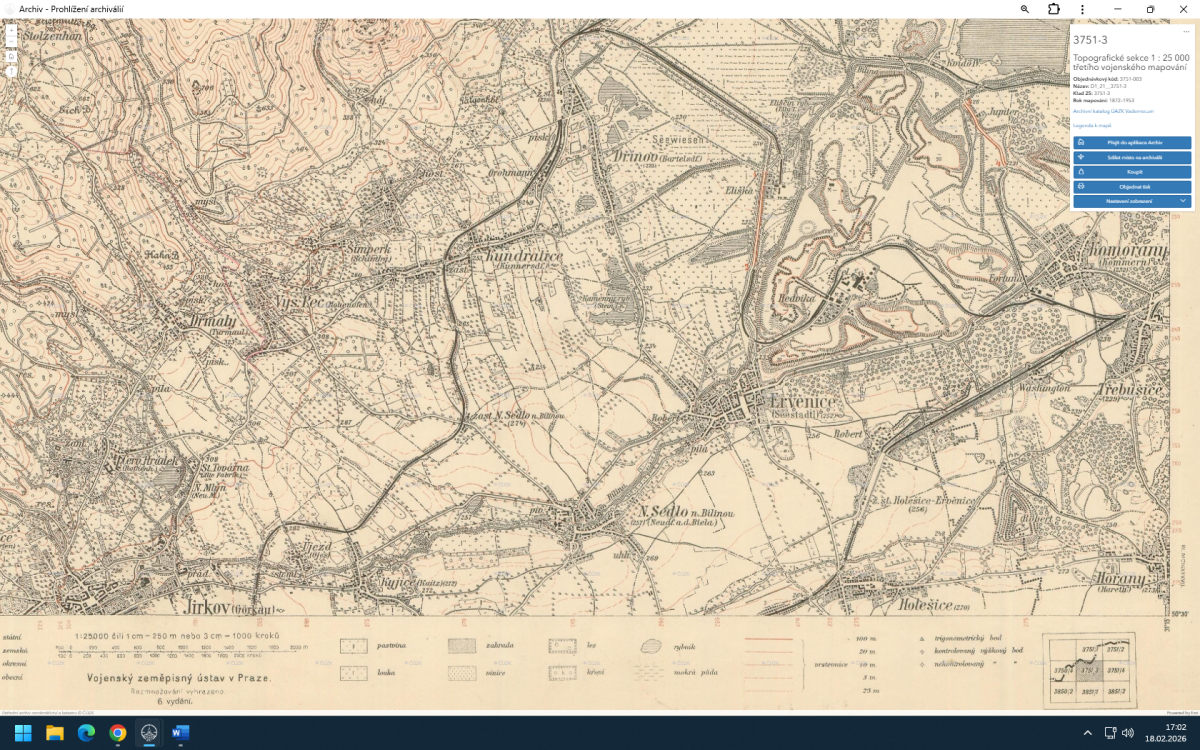 Historická mapa z tzv. 3. vojenského mapování (Geoportál CUZK)