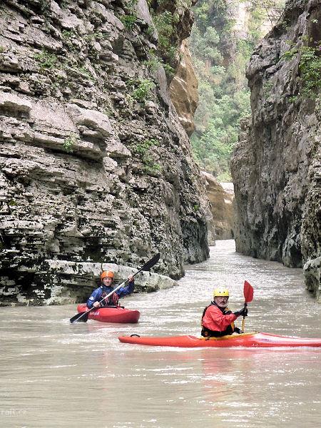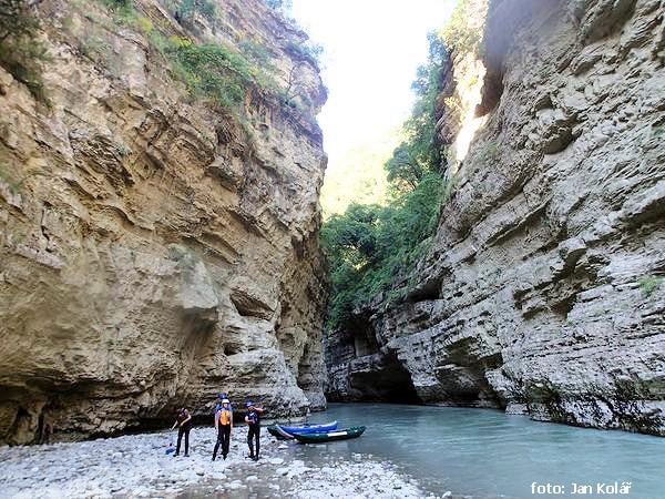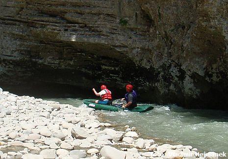 Pozor na řece Osum. V úzké soutězce nad Corovodou uvízl v nejužším místě kmen stromu. Měli jsme po ...