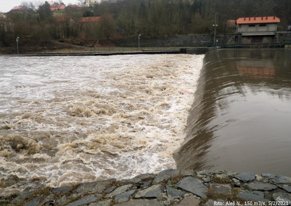 r.km 80,7 Jez Kočkův mlýn - 02/2021, 150 m3/s