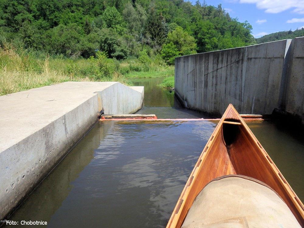 r.km 16,0 rybí přechod, propust jezu Dobřichovice za 50 m3/s