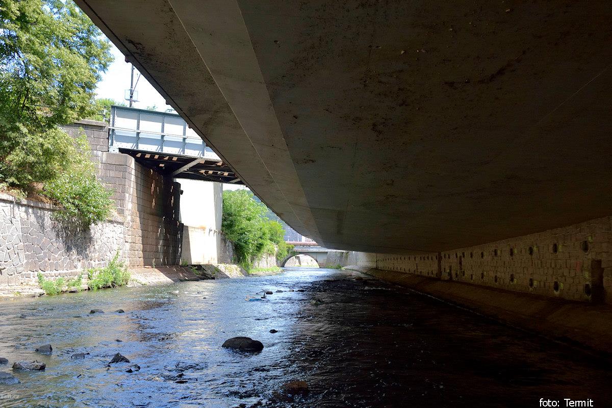 Ve Rtyně nad Bilinou čerstvě zbourali železobetonových most, kdy jim betonové bloky s železnou výzt ...