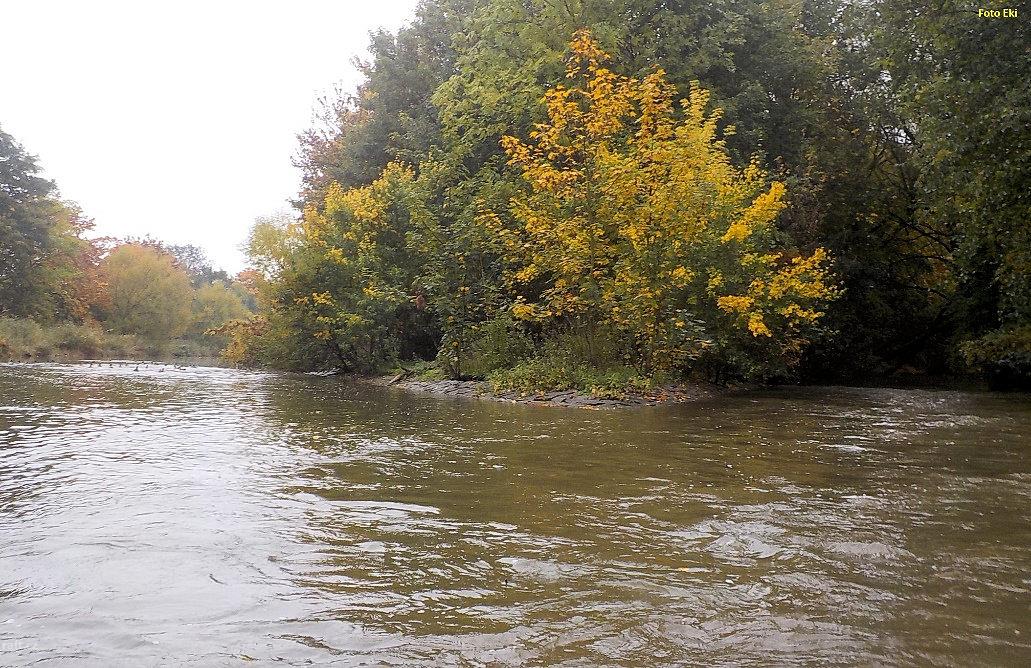 Pozor na přestavovaném jezu Sány trčí z koruny jezu armovací dráty (viz kilometráž). Nebezpečné pro ...