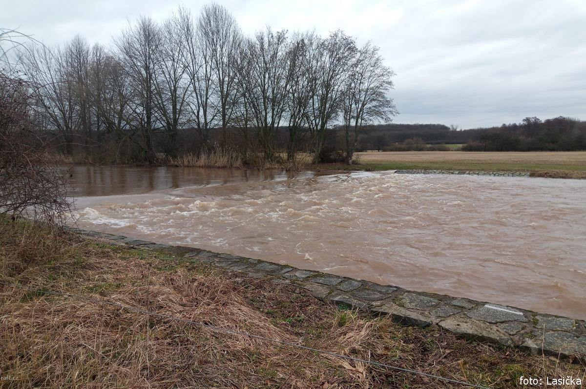 r.km 45,2 Jez Sloupno zcela zalitý při průtoku 12,5 m3/s