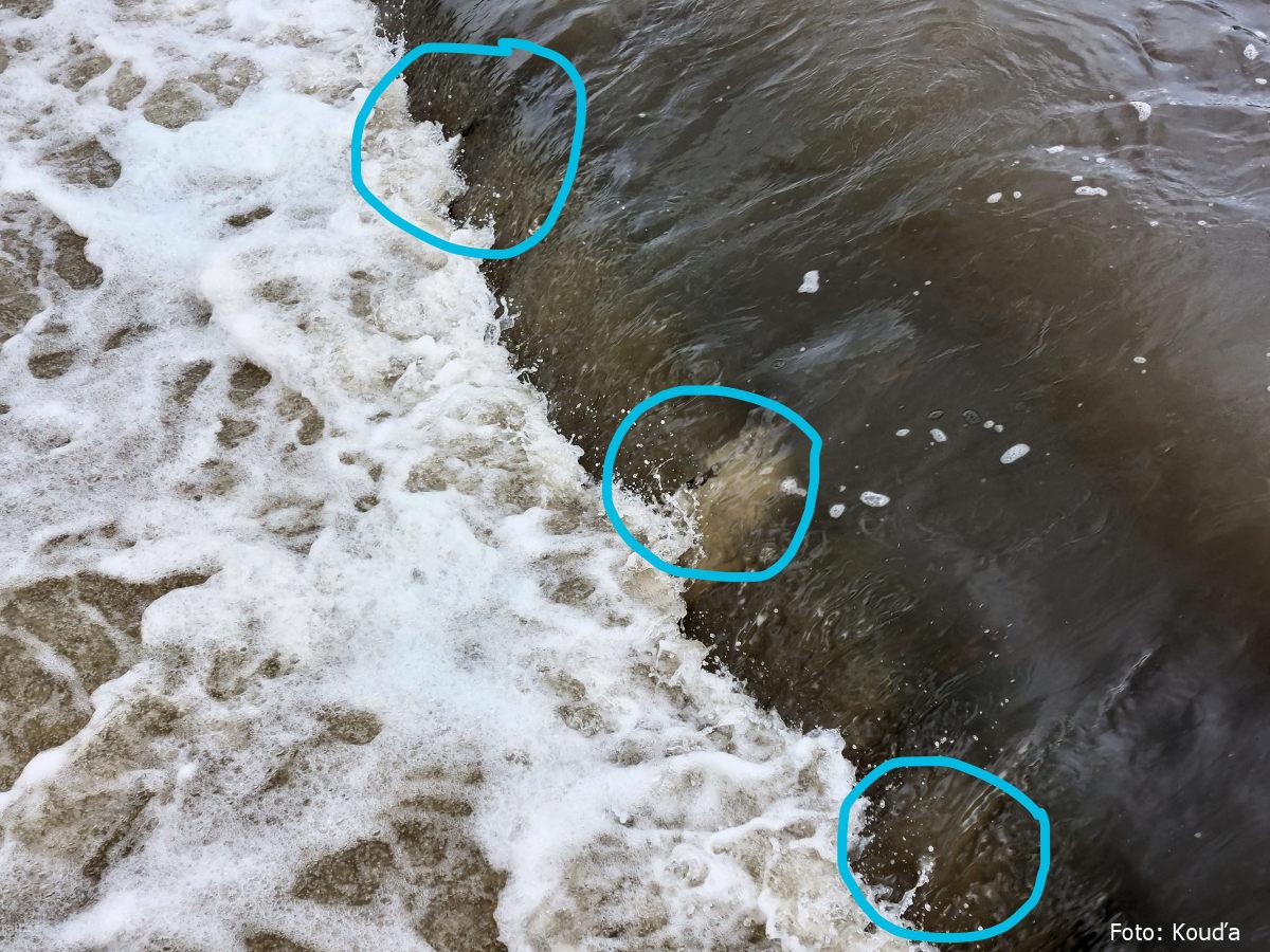 Pozor na přestavovaném jezu Sány trčí z koruny jezu armovací dráty (viz kilometráž). Nebezpečné pro ...