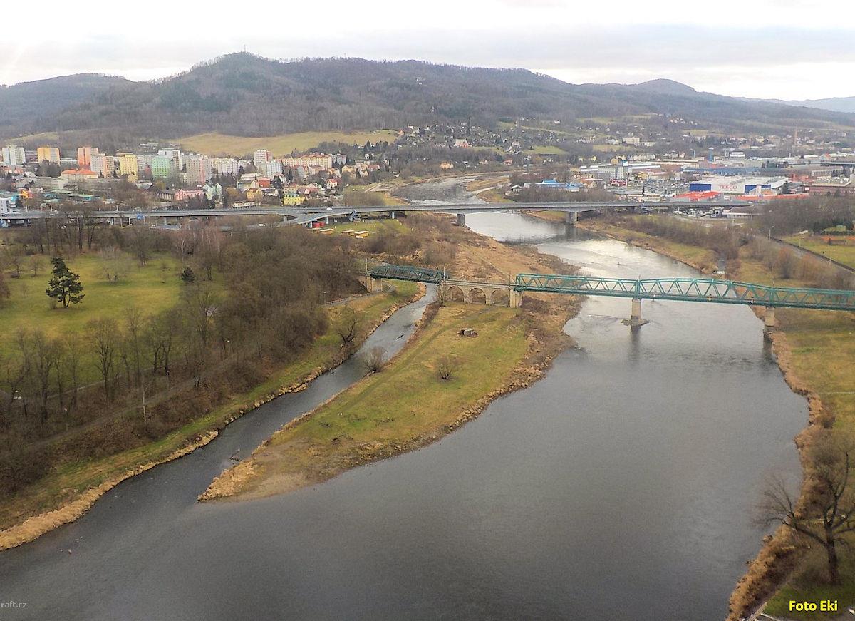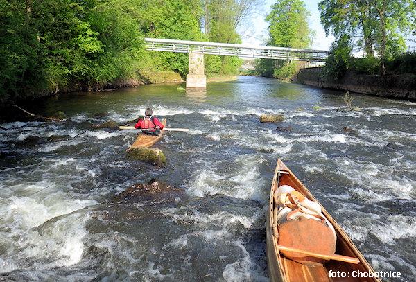 Přenést jez pod Jaroměří lze snáze, než jsem popisoval na podzim 2010. Dobře se dá přistát před most ...