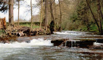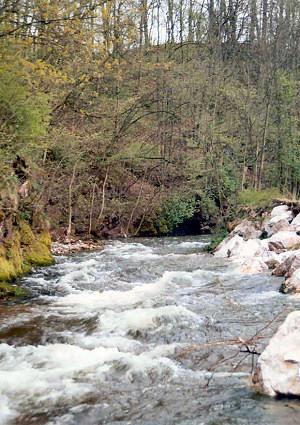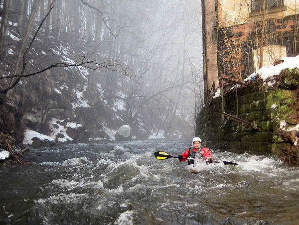 most pěší nebo lávka Luisino údolí vlevo, Hotel (pension) vlevo, přítok vlevo Husí potok obvyklý začátek plavby, WW IV a následuje za vysoké zdi, obtížné přistání !! 0,8 km |