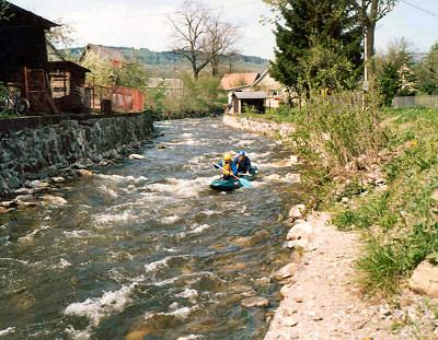most pěší nebo lávka stále obtížná místa, téměř bez možnosti zastavení !! přítok vlevo Zlatý potok 0,2 km |