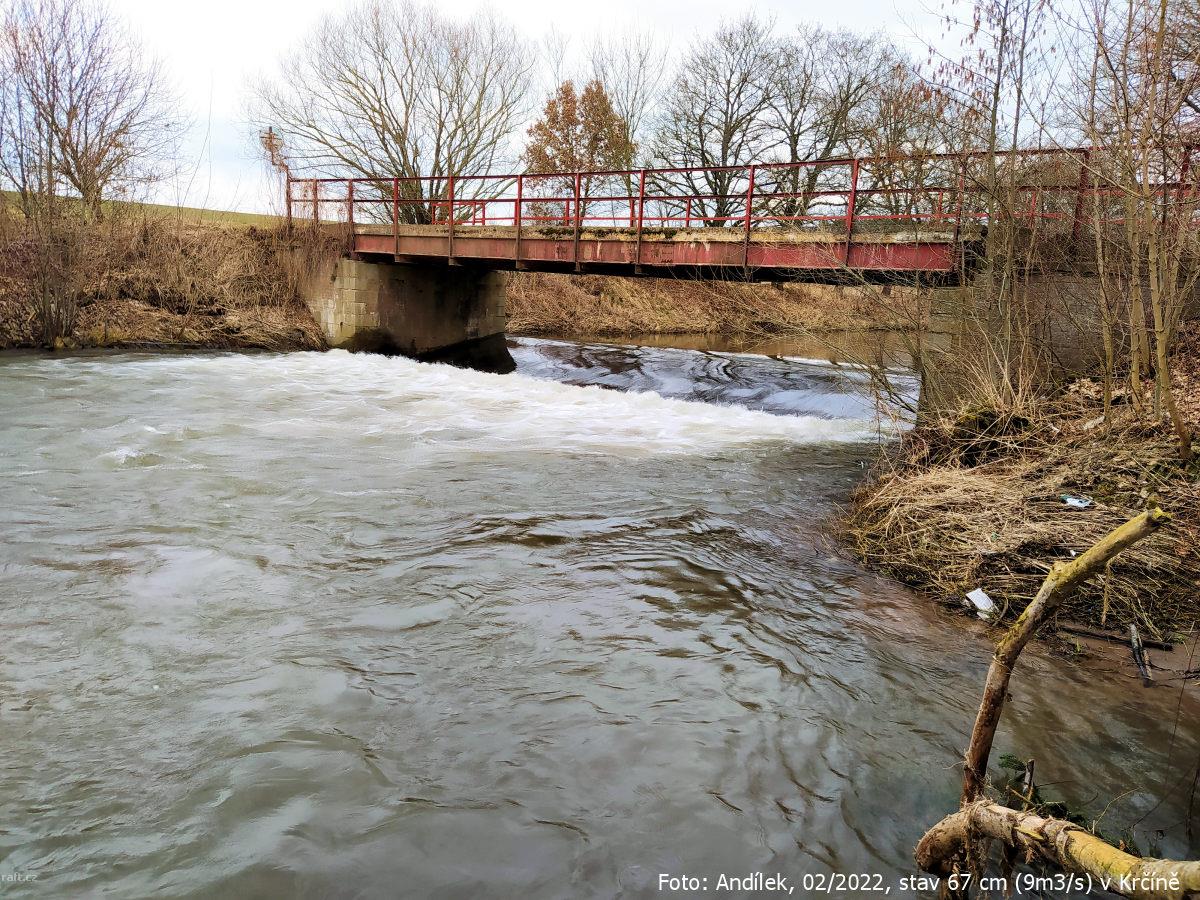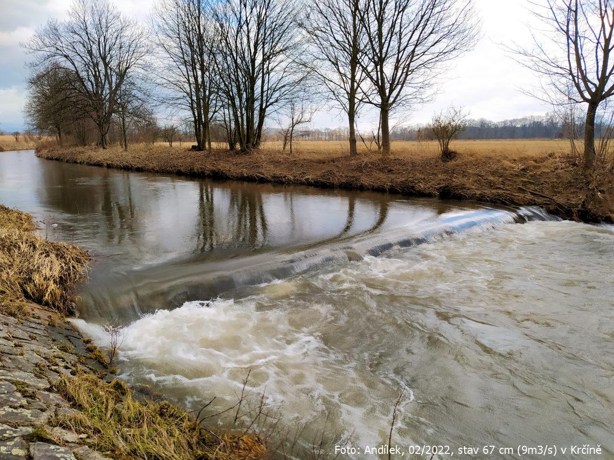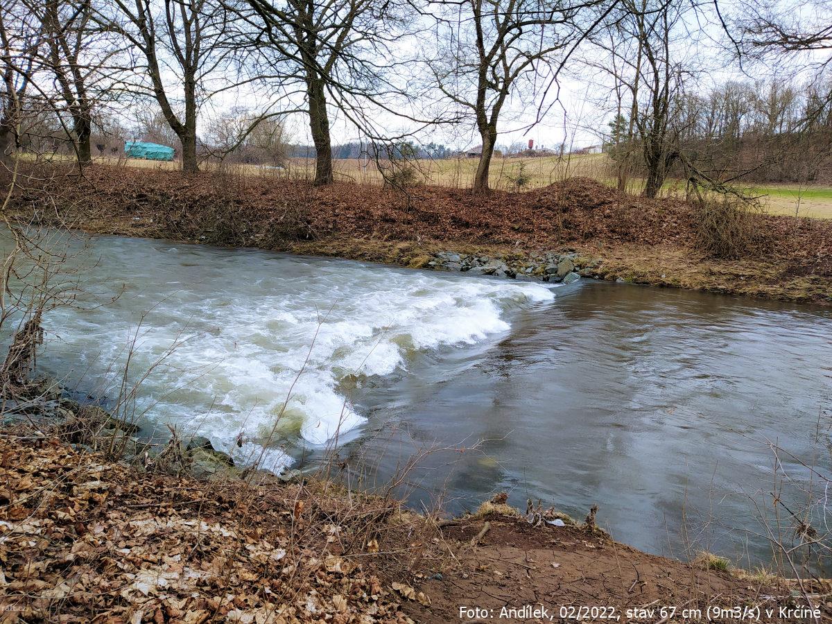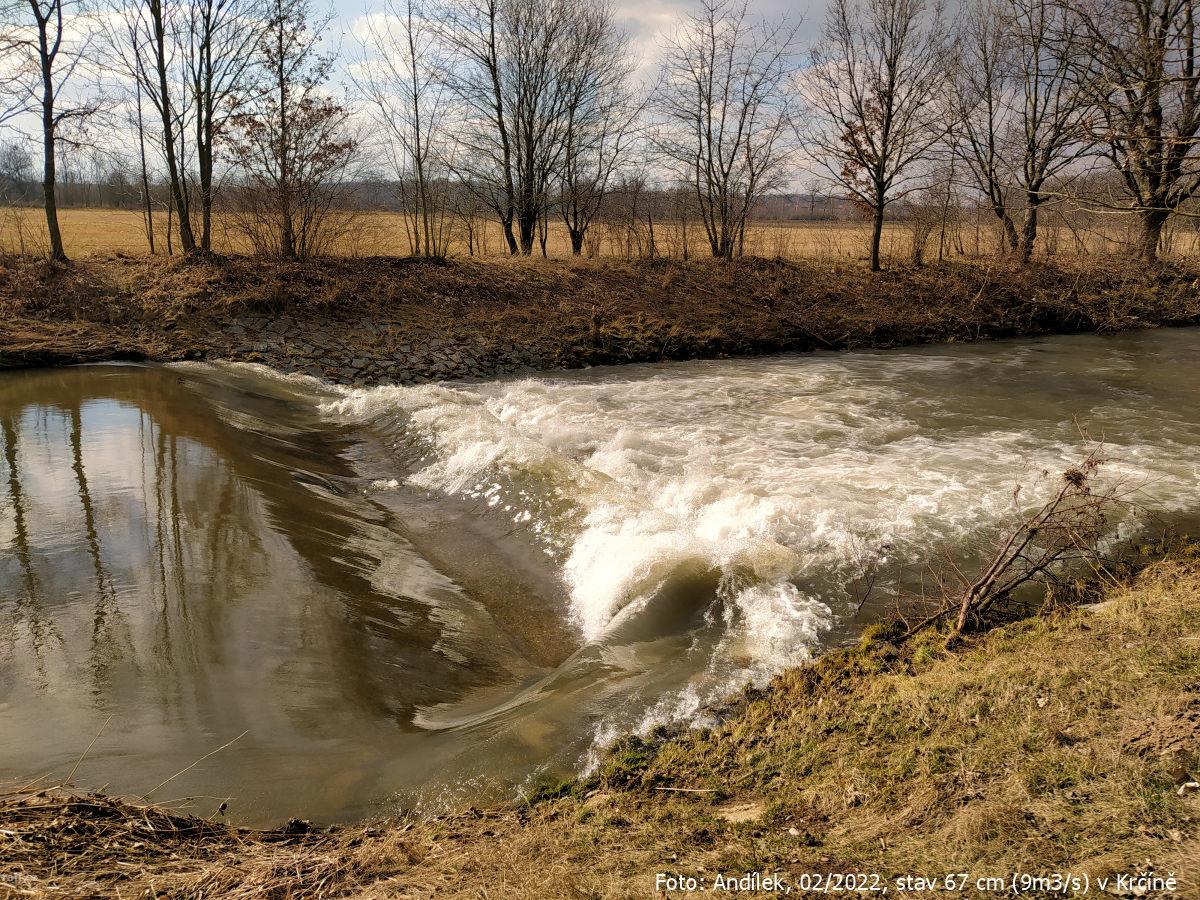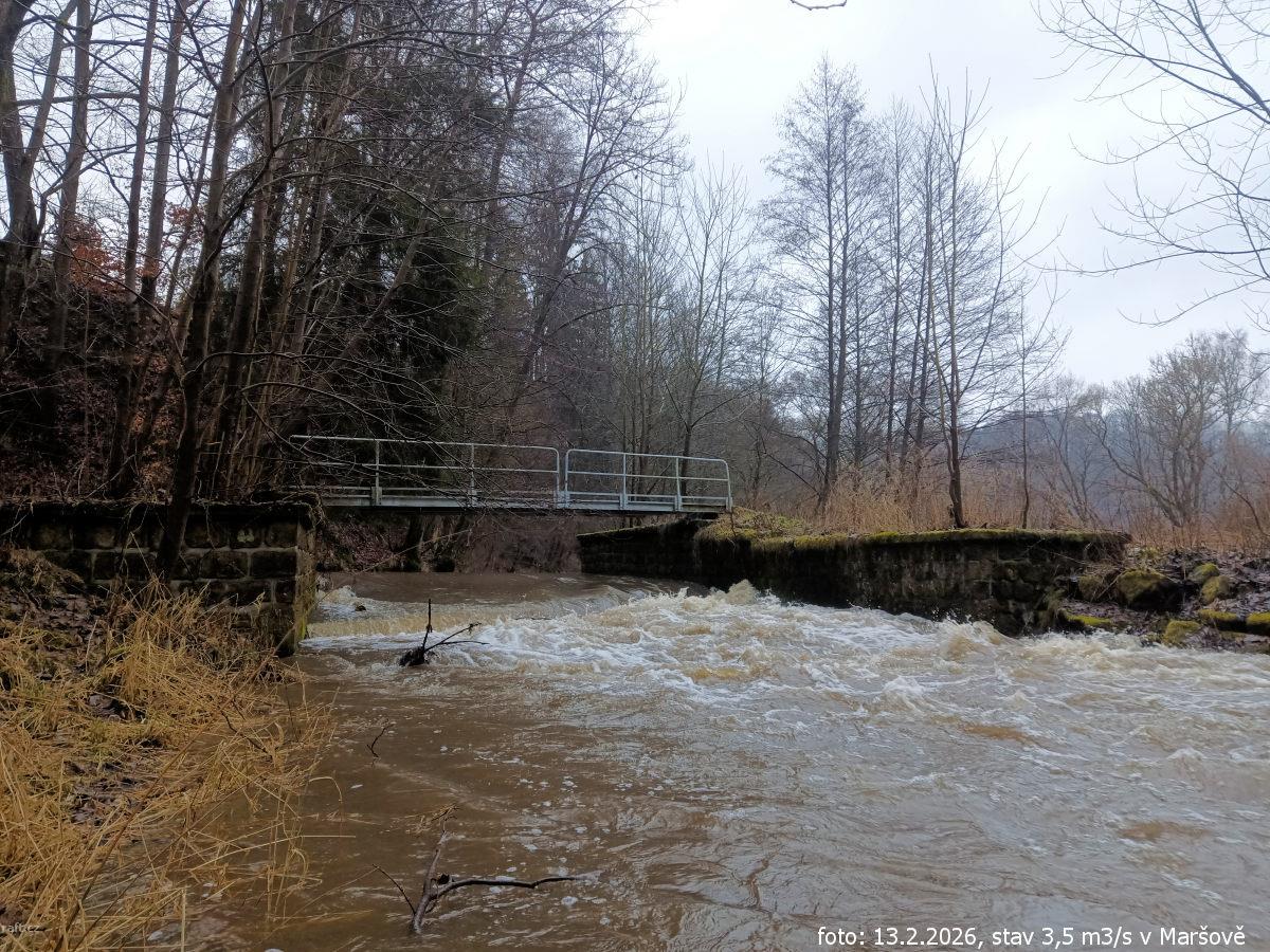 r.km 54,2 Jez u Velkých Petrovic, stav: 78 cm, 6.15 m3/s na vodočtu v Maršově