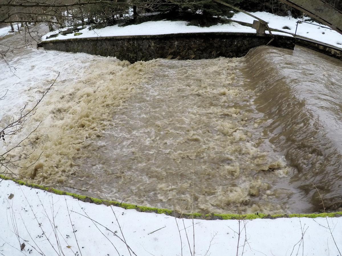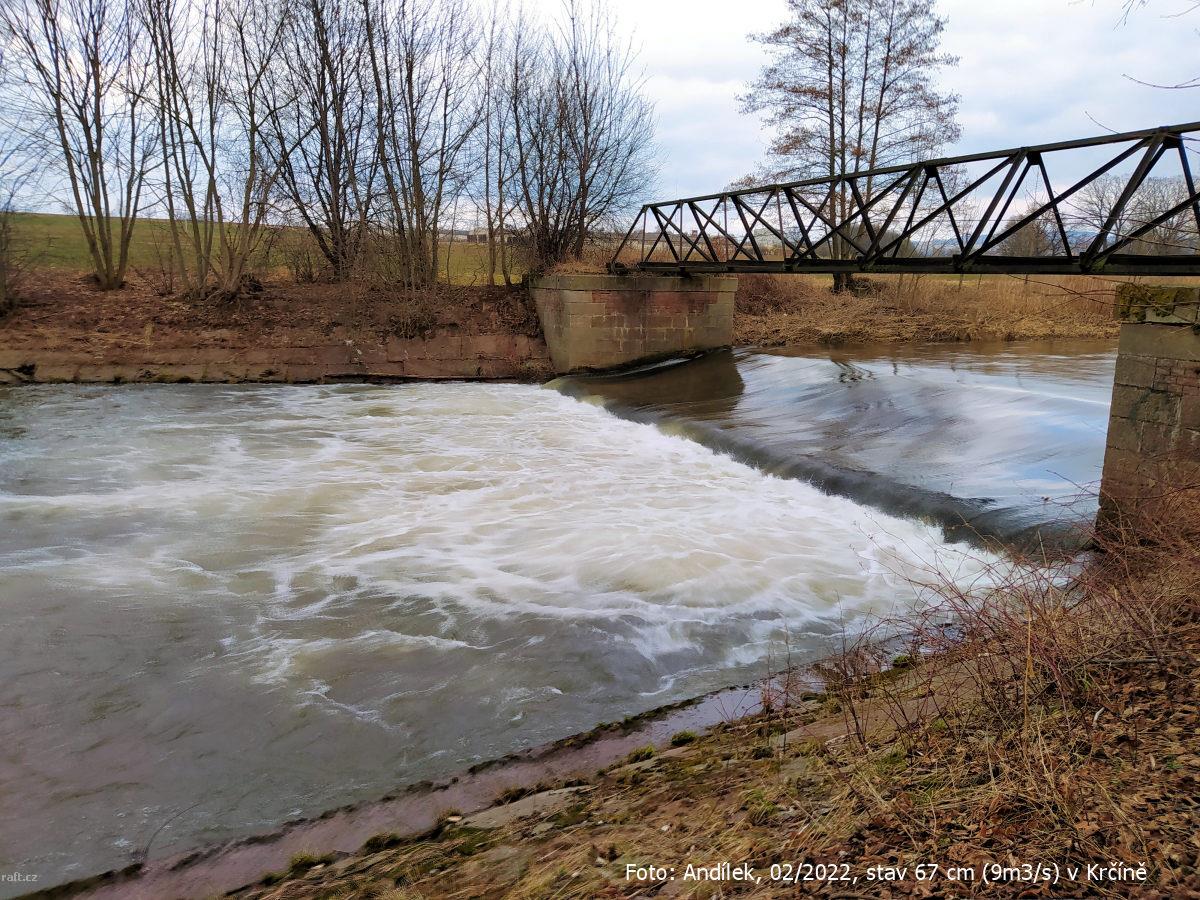 r.km 49,3 Nesjízdný jez, stav 65 cm na vodočtu v Maršově