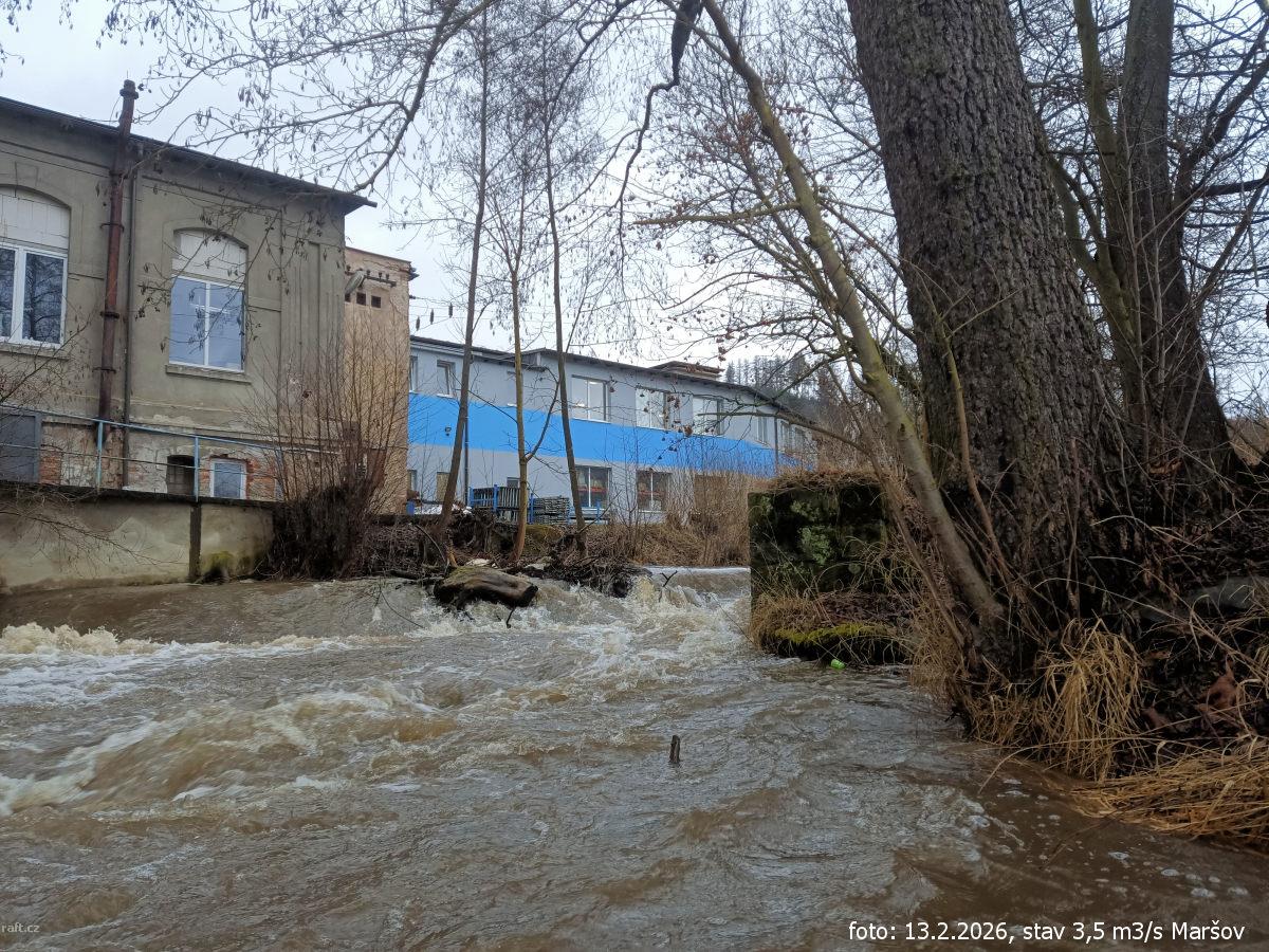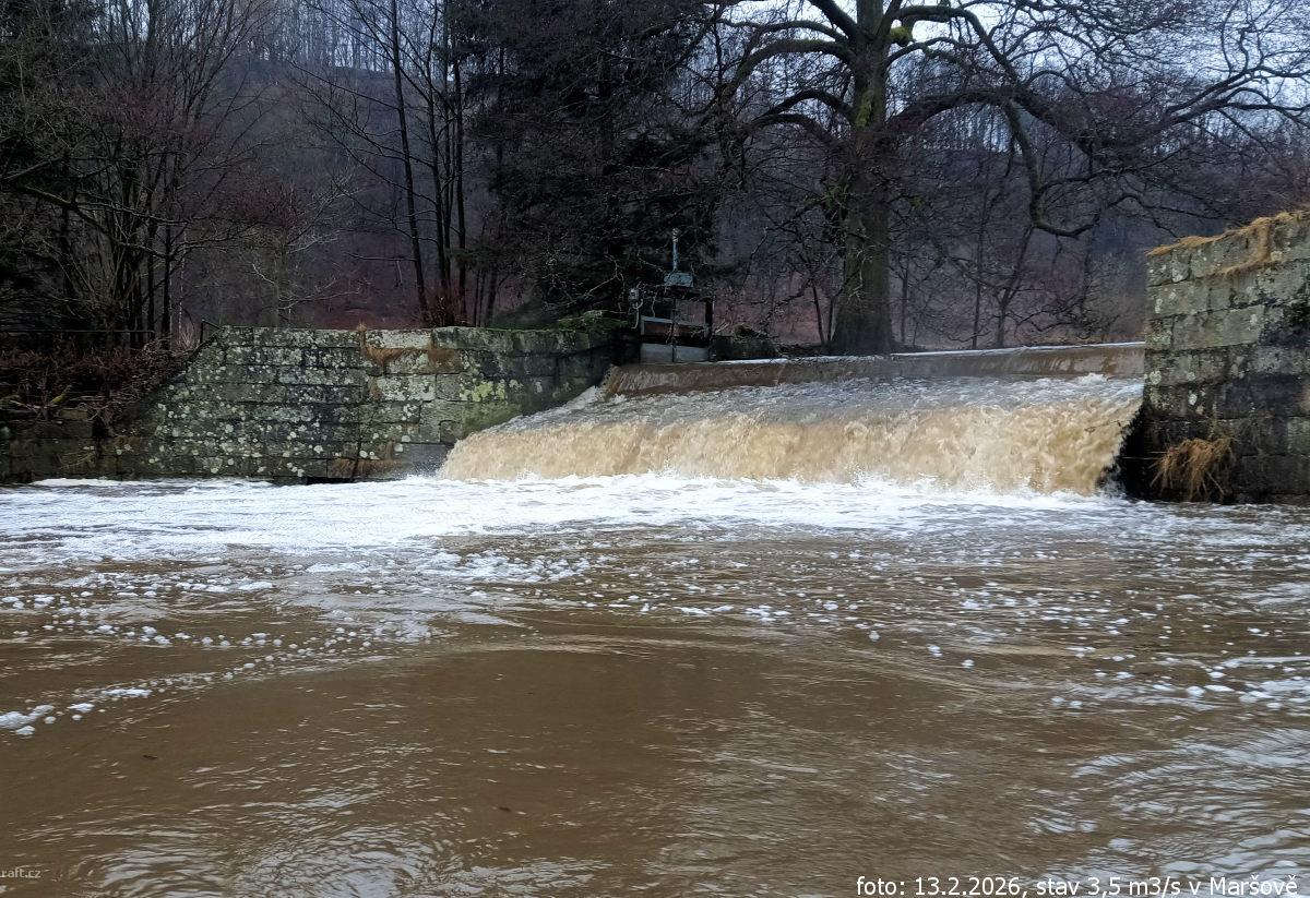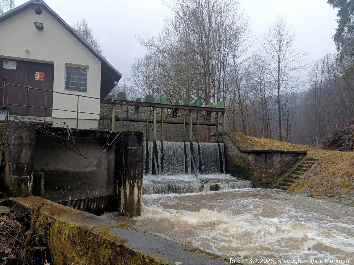 r.km 54,2 Jez Maršov, stav: 78 cm, 6.15 m3/s na vodočtu v Maršově