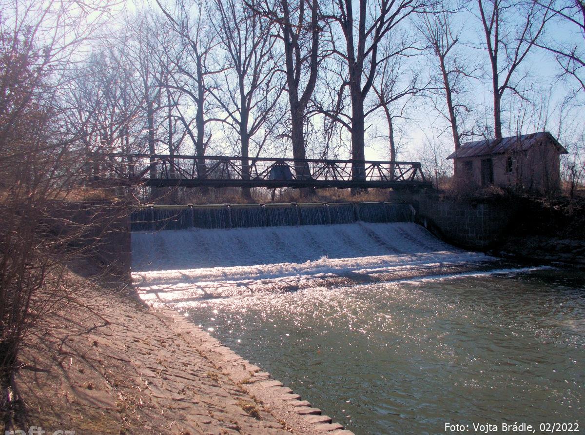 r.km 50,3 Sjízdný jez s lávkou, stav 65 cm na vodočtu v Maršově