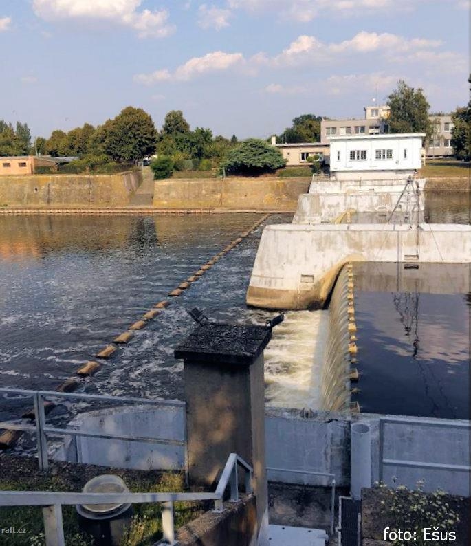 r.km 241,3 Hradební jez, nutno kolejdovat vlevo až pod vyrovnávací jez 08/2024
