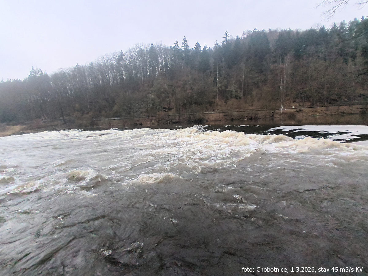 jez přenést vpravo vysoký (m) 3,1 nesjízdné, dlouhý náhon vpravo, Brozany vlevo, tábořiště 1 km vlevo, přítok vpravo Čepel (byl sjet již v r. 1928) - vlévá se do náhona elektrárny, z řeky není patrný 1,1 km (GPS: 50.450761819,14.162299633) |