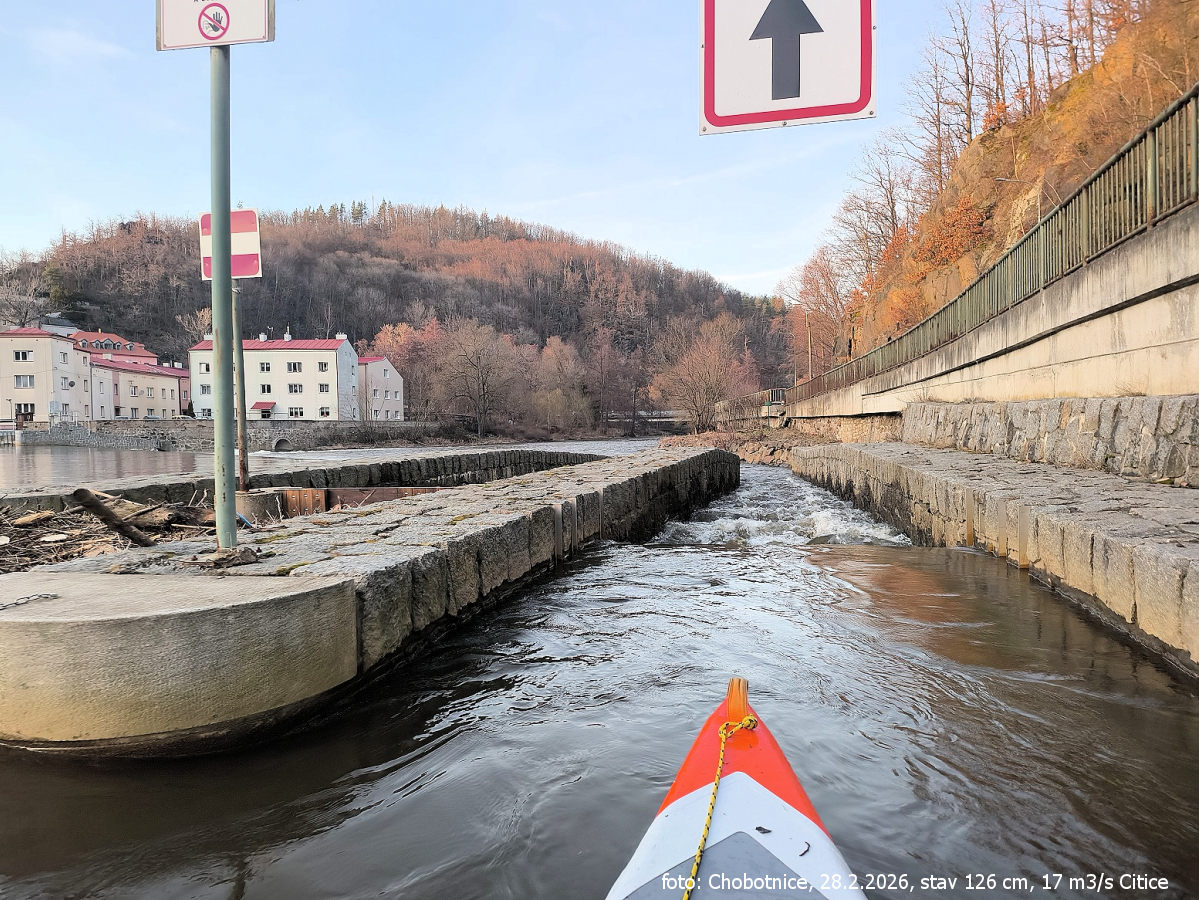 jez s propustí vpravo přenést vlevo nebo vpravo vysoký (m) 1,5 náhon vpravo, kameny pod jezem !! Hradební jez a následuje za 100 m jez s propustí vpravo přenést vlevo vysoký (m) 1,2 vyrovnávací jez 0,3 km (GPS: 50.082105313,12.36510694) |