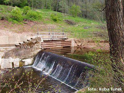 17,2 km Bělá lávka k fotbalovému hřišti od velké vody zatarasena klacky, začíná klidná voda před jez ...