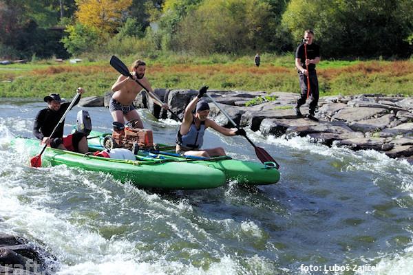 8.5.019 - pod žichovickým jezem to dře i prázdnou nafukovačku. Nepostrádá někdo loď? Asi 1,5 km nad ...