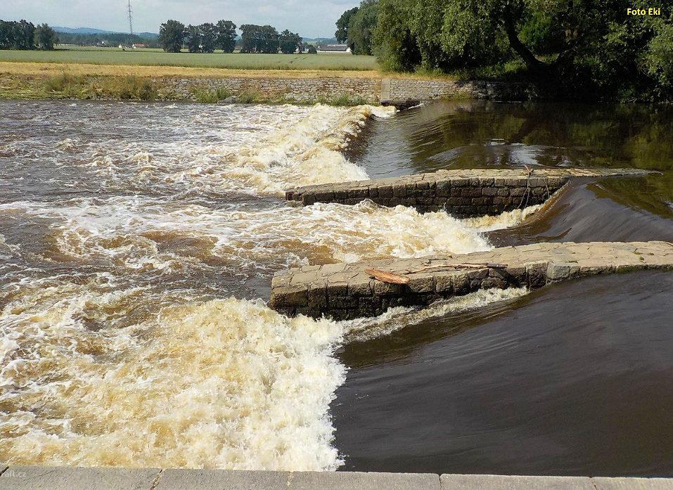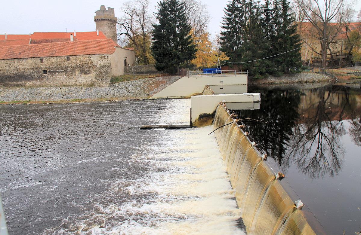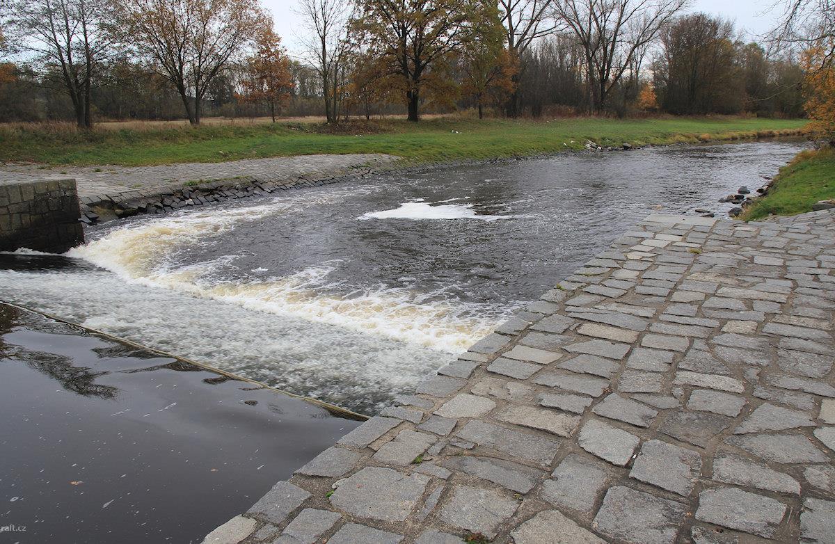 Z důvodu přestavby je koruna jezu v celé šíři snížena (odbourána ...