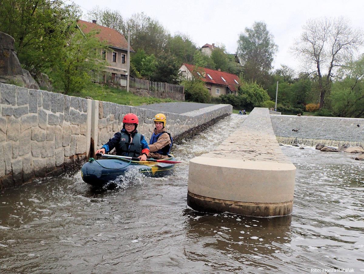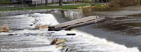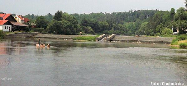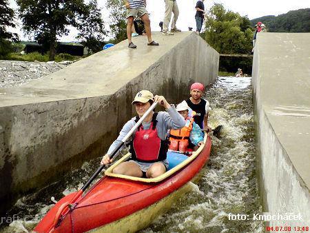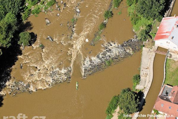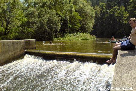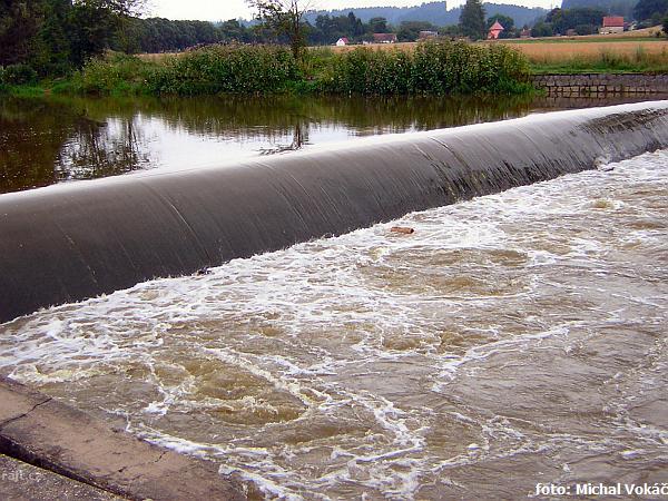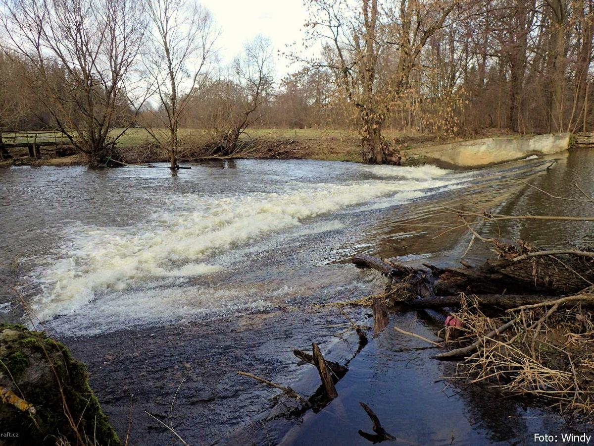 Jez Podělusy je zcela opravený a průjezdný sportovní šlajsnou u pravého břehu. Před šlajsnou jsou ka ...