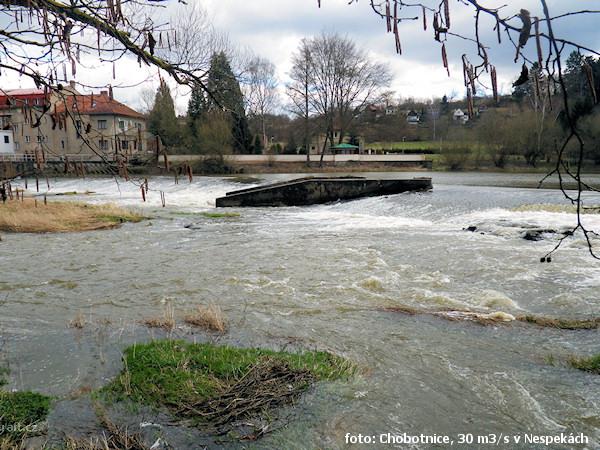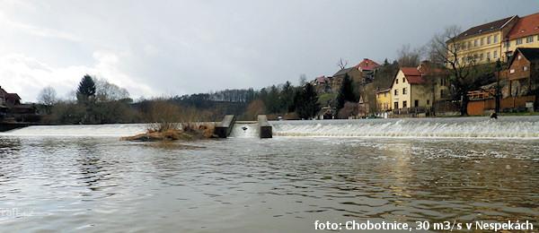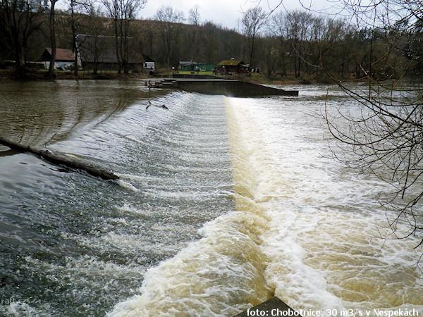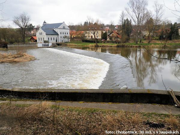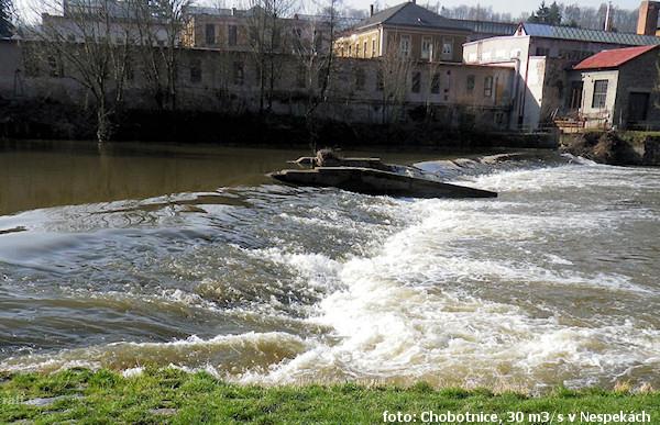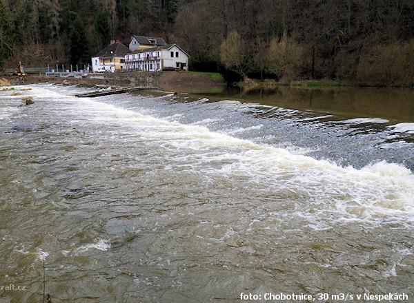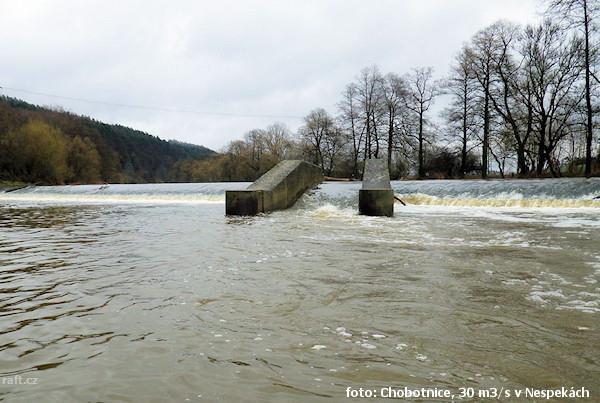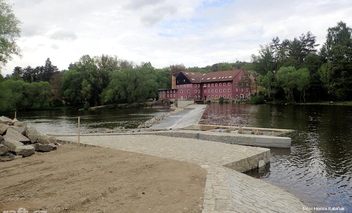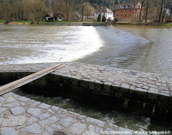 Jez Podělusy je zcela opravený a průjezdný sportovní šlajsnou u pravého břehu. Před šlajsnou jsou ka ...