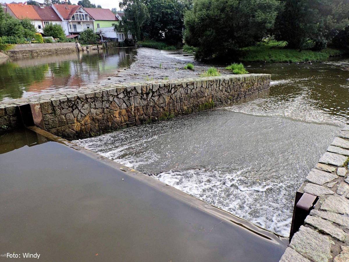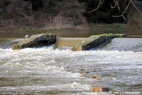 na Lesním jezu na Sázavě jsou kameny ve šlajsně. Nevím, jestli se tam navalily nebo i zabetonovány, ...