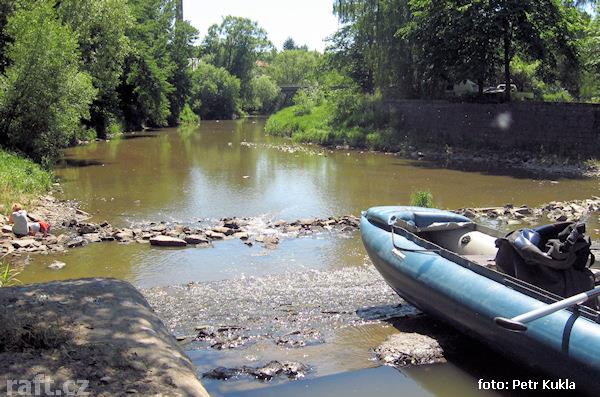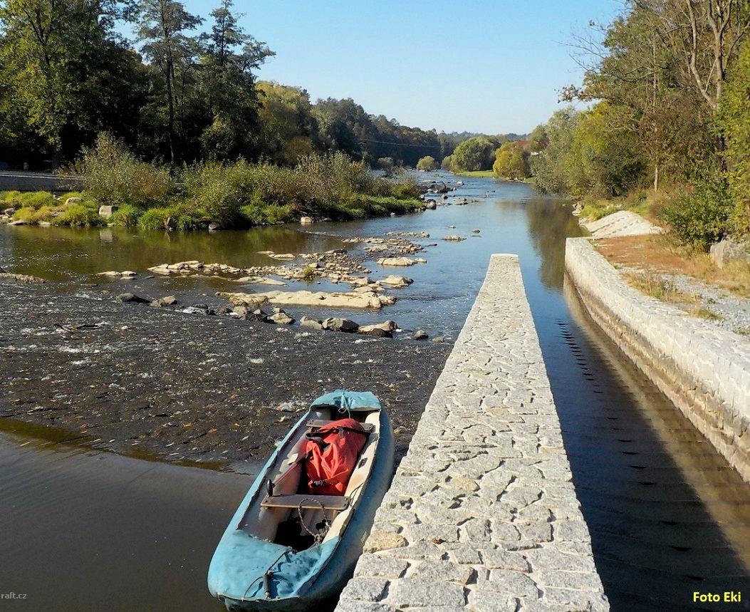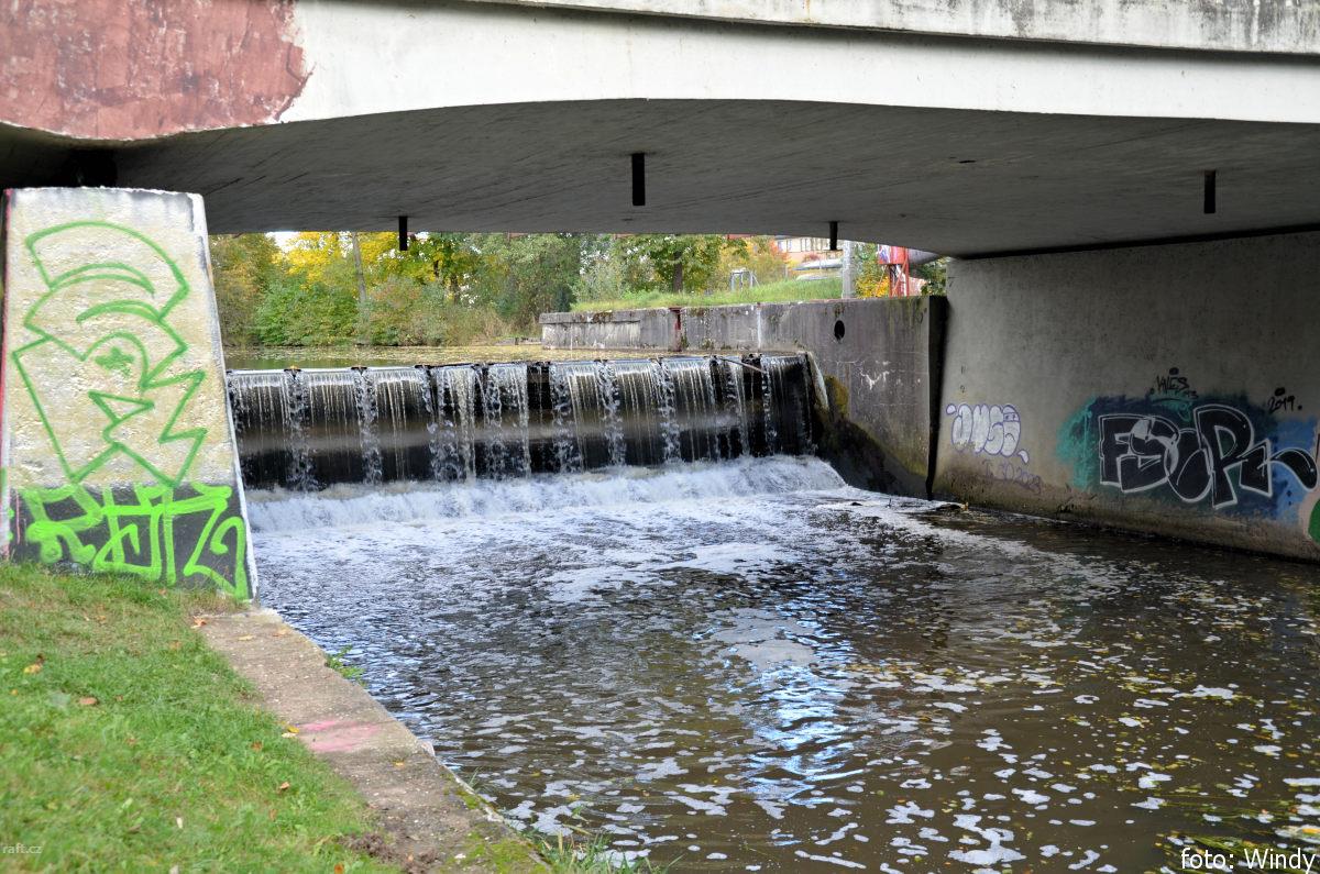 Jez Podělusy je v rekonstrukci a nelze sjet. Řeka je zde zatrubněna a vzniklo potenciálně nebezpečné ...