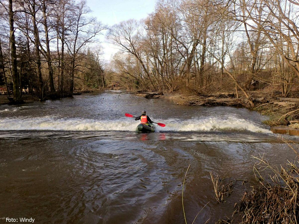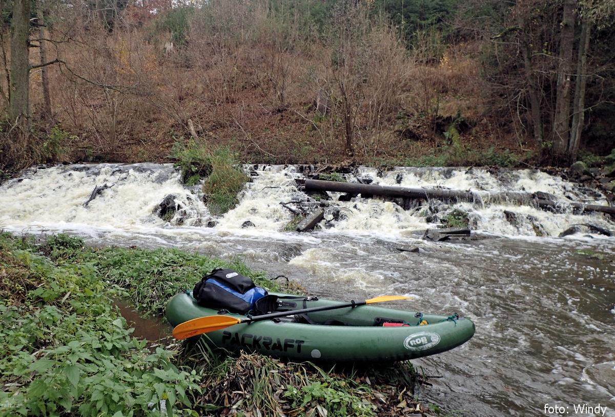 Lesní jez upozornění pro kajakáře .