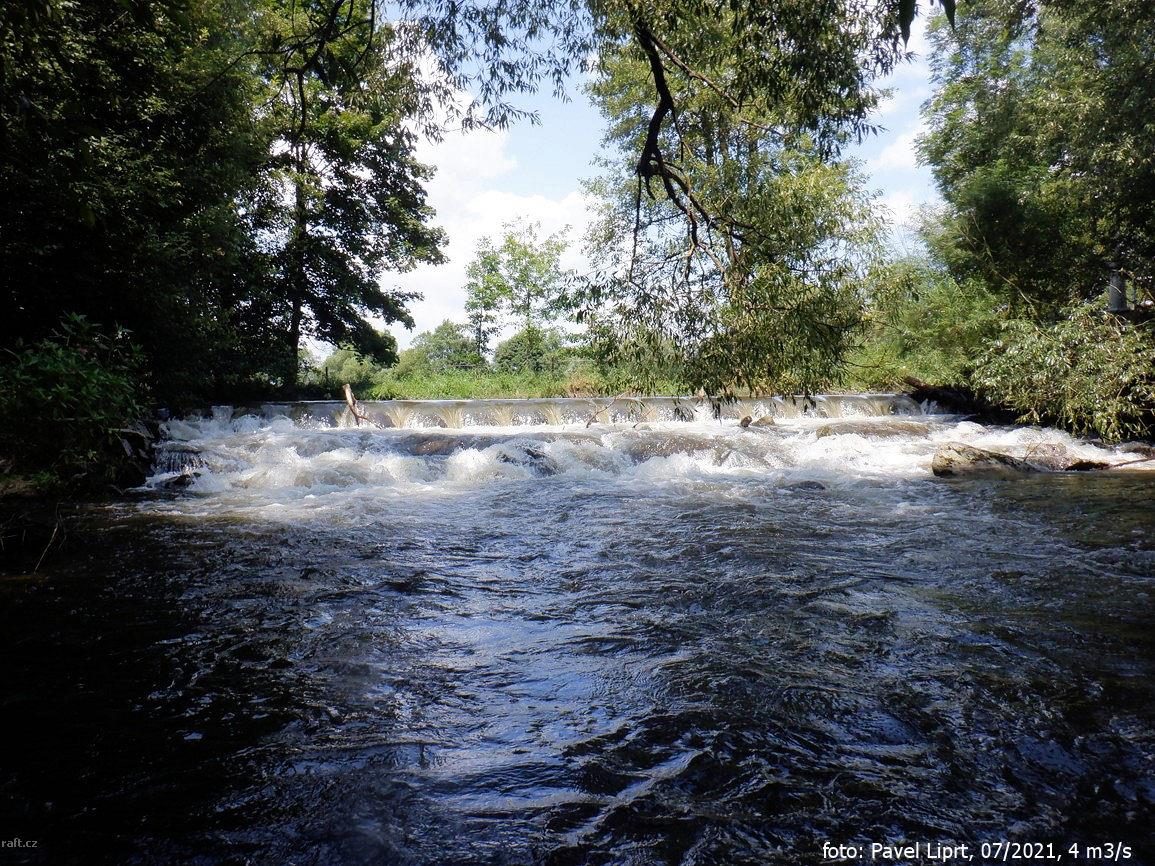 r.km 68,0 Poborovice - jez 22.3.2020, MZP= 1,02 m3/s, spád jezu je 1,95 m