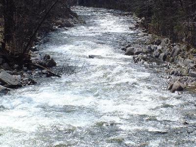 Dne 20. dubna - ještě parádní plavba, Slatina 65 cm, ale asi 1 km pod Rýzmburkem napříč celým řečišt ...