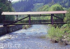 Pozor v Úpici, kde se opravuje most. Lešení zasahuje do toku v celé šířce, ční tam roxory proti vodě ...