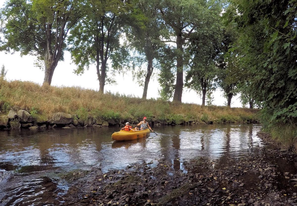 v 7/2012 cca 1 km nad Viktorčiným jezem ležel strom přes celou řeku, byl tam již na jaře. Asi tam je ...