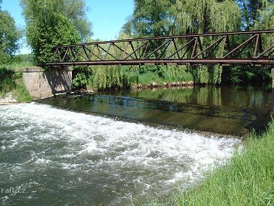 Přestavuje se jez na km 41,8 Bohuslavice nad Úpou. Elektrárna bude vlevo, přenášet asi půjde jen vpr ...