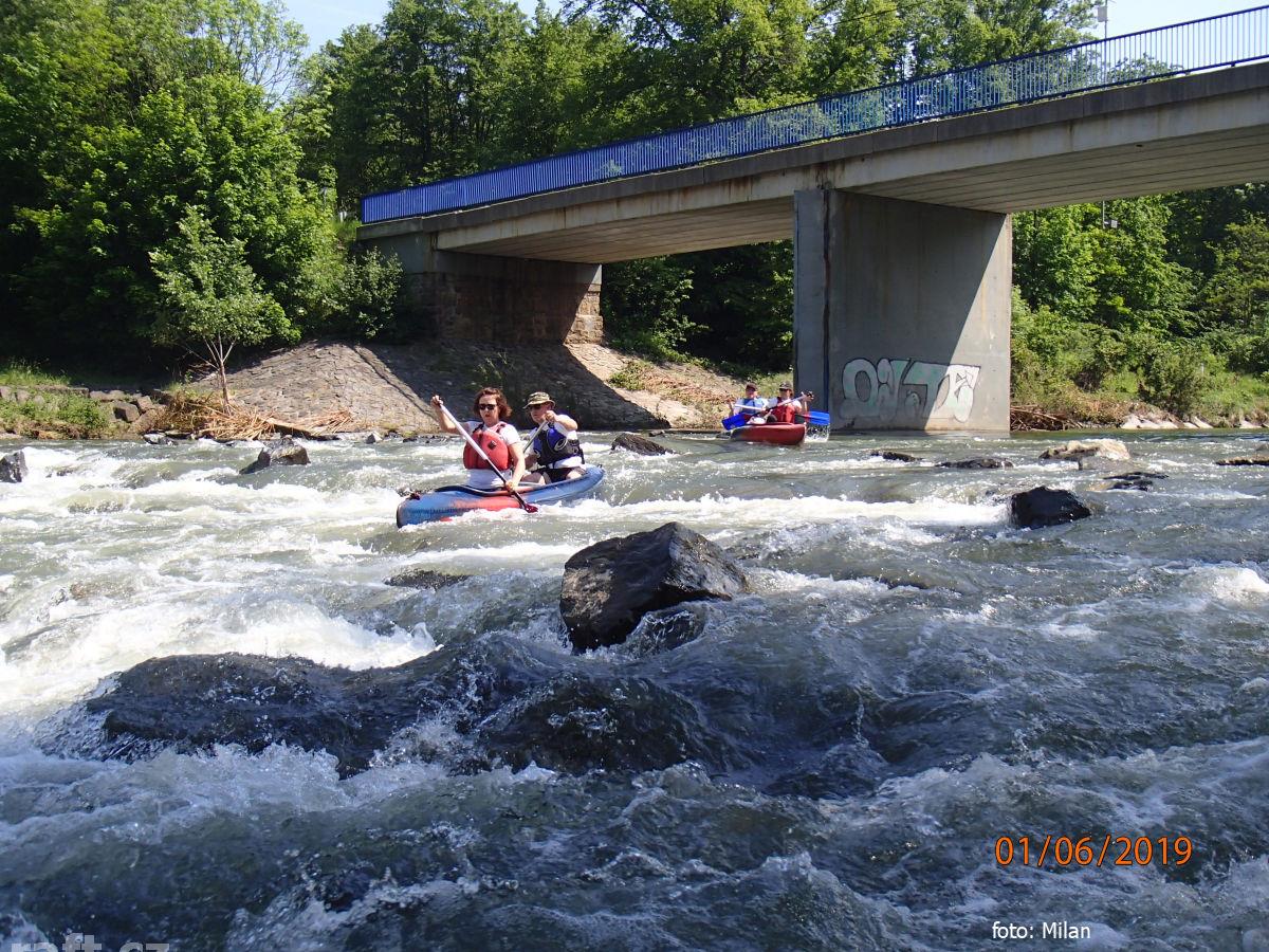 Při 145 cm na vodočtu v Dluhonicích jsme jeli hezký úsek z Hranic od jezu do Lipníka k mostu směr Tý ...