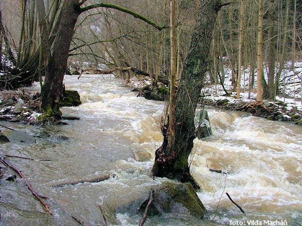 Bystřice 19.3.2005 vodočet v Hrubé Vodě 110cm, v Domašově pozor, ještě před prvním jezem je přes řek ...