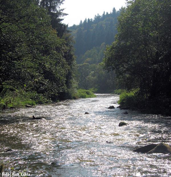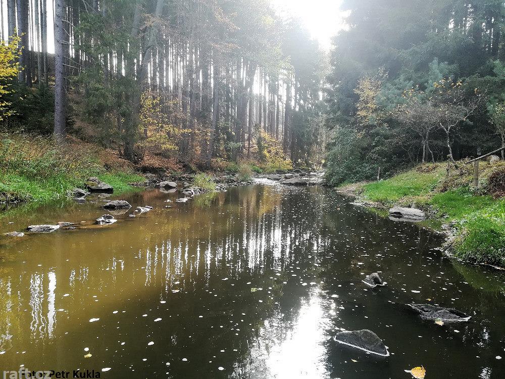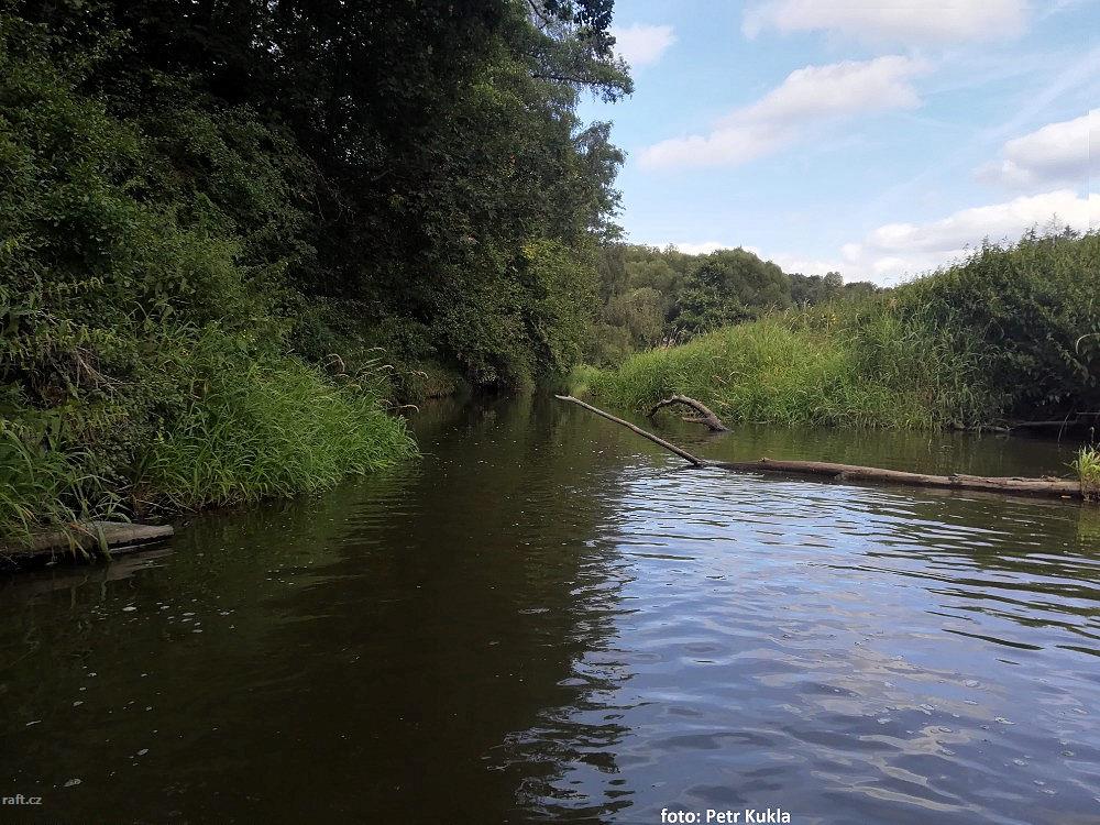 Kousek pod jezem Mohelenský mlýn (to je ten první pod přehradou) jsou dva padlé stromy přes celou ře ...