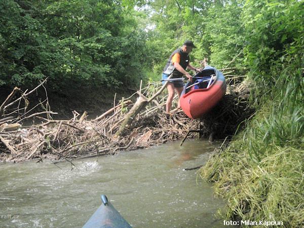 Spadene stromy pres celou reku v Heřmankach , cca 90,4 r. km