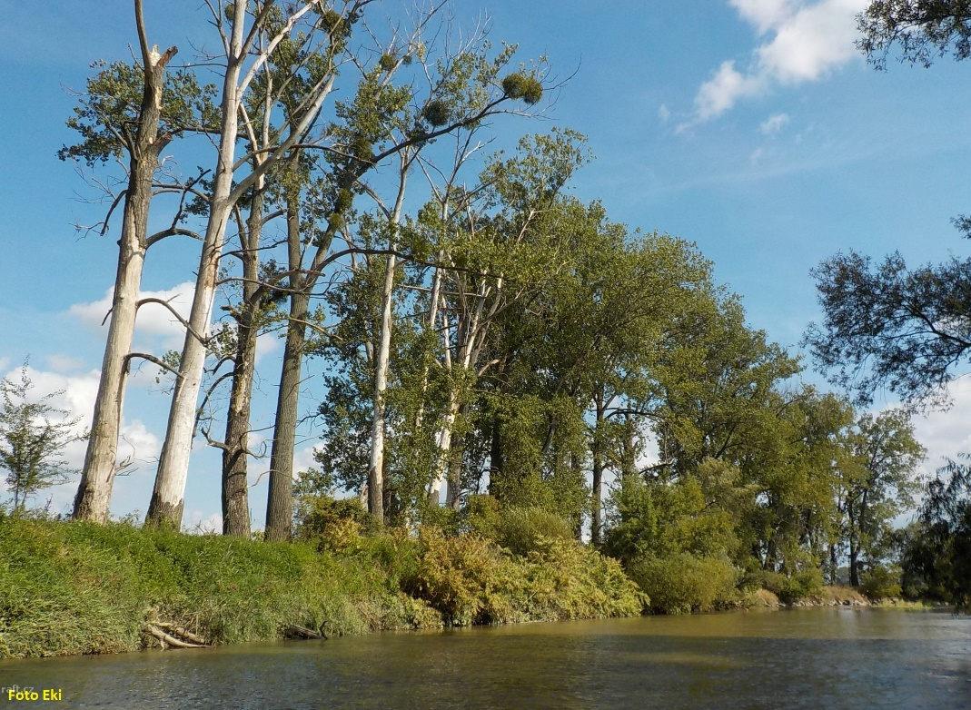 Cca 500 m pod jezem v Kunově je přes řeku natažený špatně viditelný drát - zcela bez označení (vprav ...