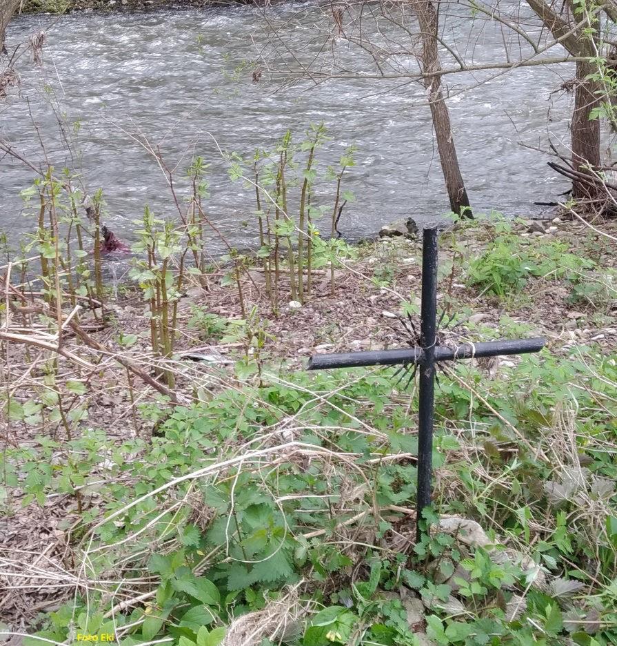 Cca 500 m pod jezem v Kunově je přes řeku natažený špatně viditelný drát - zcela bez označení (vprav ...