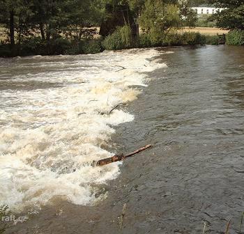 cca 74,0 ř.km v Březině za siln. mostem po vracení nahonu spadly strom přes celou řeku a